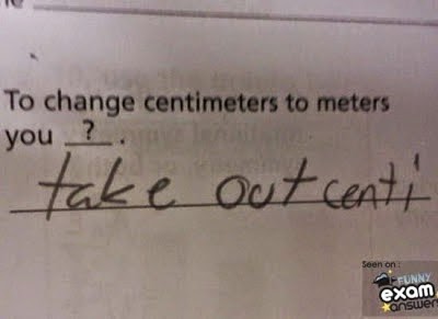 Oke, ini cerdas banget. Kata “centi” tinggal diilangin dan jadilah “meters”! Nggak kepikiran.